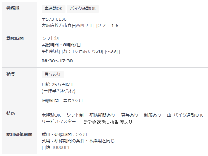 試用・研修期間の条件:本採用と同じ