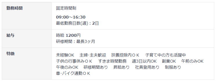 就業時間 9:00~16:30 週3日~